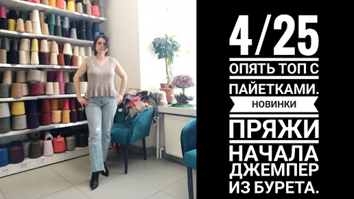 4/25 Опять топ с пайетками. Новинки пряжи. Начала джемпер из бурета.