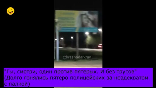 "Гы, смотри, один против пятерых. И без трусов" (Долго гонялись пятеро полицейских за неадекватом с палкой)