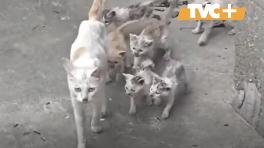 Измученная и худая мама-кошка вышла к людям просить помощи