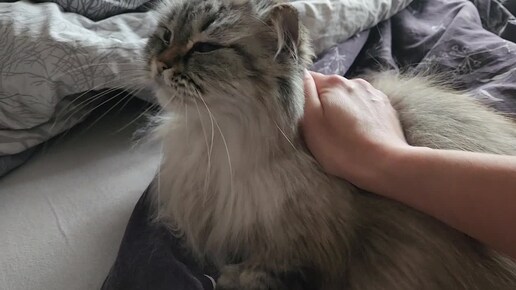 "Чешите меня, чешите!" Пушистая кошка прихорашивается и кайфует сама от себя. Смотреть со звуком!