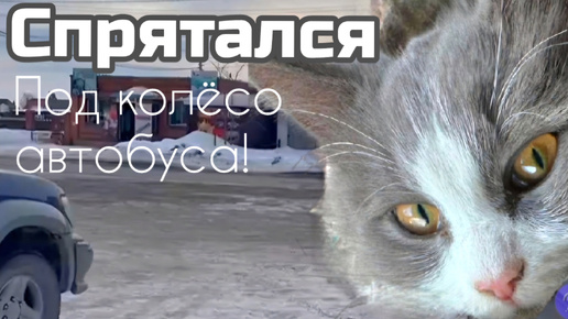 Люди на остановке увидели кота под колёсами автобуса / водитель не увидел !
