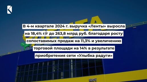 Розничная сеть «Лента» объявила финансовые результаты за 4-й квартал и 2024 г. в целом