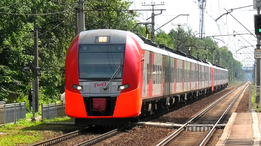 Сдвоенная Ласточка ЭС2Г-018/026 сообщением Санкт-Петербург — Выборг летит через о.п. Озерки