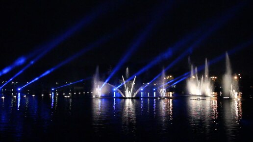 Россия. Москва. Парк и дворец Царицыно. Фестиваль Круг Света! Фонтаны на пруду!