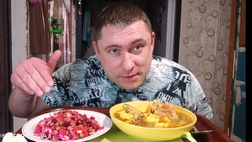 Мукбанг/обжор/картошка тушёная с рёбрышками, винегрет/