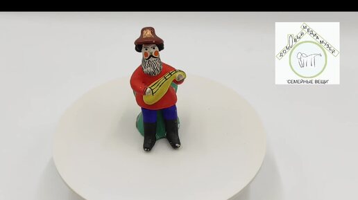 Дымковская игрушка. Автор:Порошина Н.П. Изделие 14 (1960-1970 гг.). Название отсутствует (предположительно "Гусляр"). Муз.: Римский-Корсаков