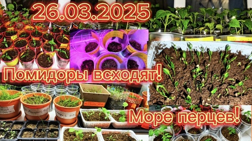 26.03.2025.Томатики всходят!🍅 Куча перцев!🫑 Пробежимся по рассаде.😉