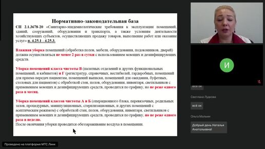 "Организация и контроль уборочных мероприятий в медицинской организации-законодательство 2025 года",25.03.2025, Выступление Ватолиной Н. А.