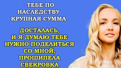 Тебе по наследству крупная сумма досталась и я думаю тебе нужно поделиться со мной, прошипела свекровка...Правдивые истории из жизни