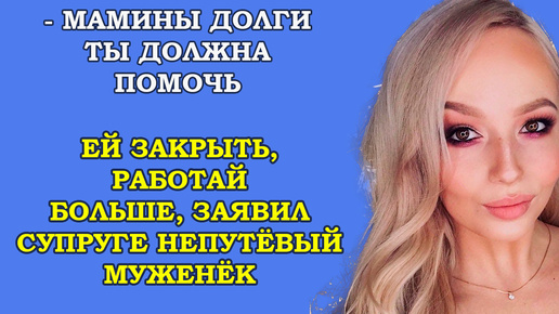 Мамины долги ты должна помочь ей закрыть, работай больше, заявил супруге непутёвый муженёк...Правдивые истории из жизни
