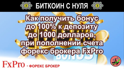 Как получить бонус до 100% к депозиту до 1000 долларов, при пополнении счета форекс брокера FxPro
