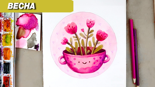 Как нарисовать цветы акварелью, как нарисовать весну, рассада