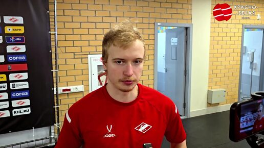 Егор Савиков после первого матча плей-офф «Спартак» 5:4 ОТ «Северсталь». 26 марта 2025.