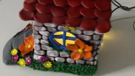 Сделала домик из картона и лёгкого пластилина в садик внучке