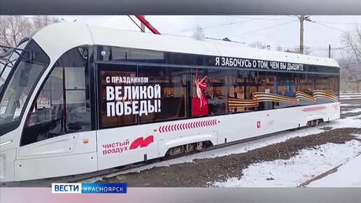 В Красноярске на маршрут вышли праздничные трамваи