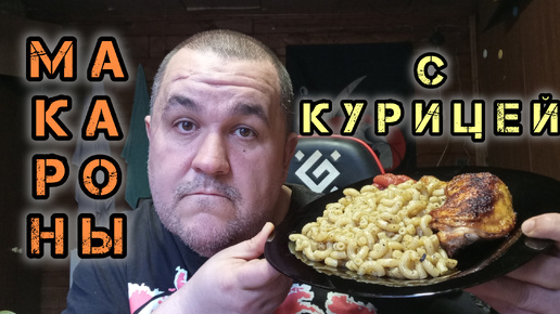 Жареный окорочок с макаронами, салат морковь с чесноком | обжор не мукбанг