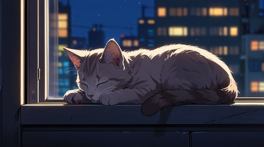 Колыбельная. Милый аниме котик спит на подоконнике. Котики