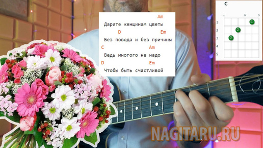 Как играть песню ДАРИТЕ ЖЕНЩИНАМ ЦВЕТЫ. Аккорды без баррэ, разбор на гитаре