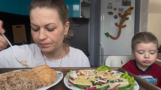 МУКБАНГ ТЕФТЕЛИ ГРЕЧКА ОВОЩИ ПОД СЫРОМ И МАЙОНЕЗОМ/MUKBANG ЕДА ОБЖОР