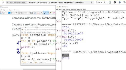 Крепкая задача на подсчет количества адресов. Тип заданий - №13, ЕГЭ по информатике, вариант пробного экзамена от марта 2025 автор: А. Рогов