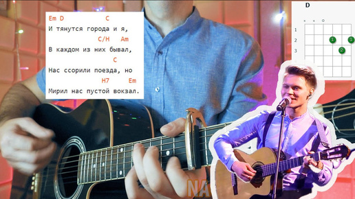Женя Трофимов - ПОЕЗДА. На простых аккордах, без баррэ, разбор на гитаре