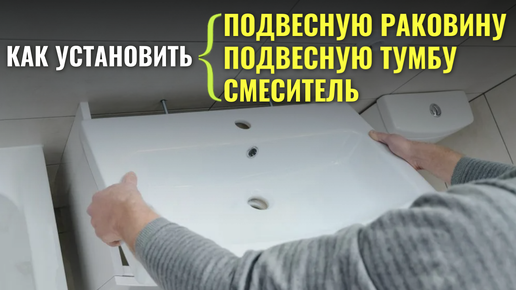 Как установить ПОДВЕСНУЮ РАКОВИНУ, ПОДВЕСНУЮ ТУМБУ по раковину и СМЕСИТЕЛЬ