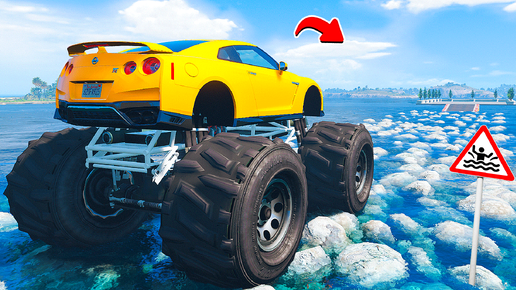 ПРОЕХАЛ ВОДНЫЕ КАМНИ на ГИГАНТСКОМ НИССАН ГТР в ГТА 5 МОДЫ - ЭКСПЕРИМЕНТЫ в GTA 5 MODS