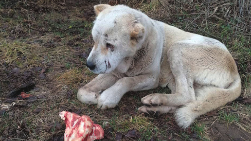 Избавились от белого Алабая , второй день лежит у дороги, плохо кушает