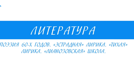 11 класс - Литература - Поэзия 60-х годов. «Эстрадная» лирика. «Тихая» лирика. «Лианозовская» школа