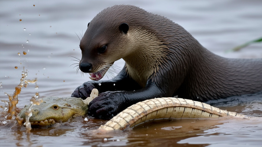 Её хвост ломает кости, зубы рвут броню: крокодилы в панике бегут от этой выдры!