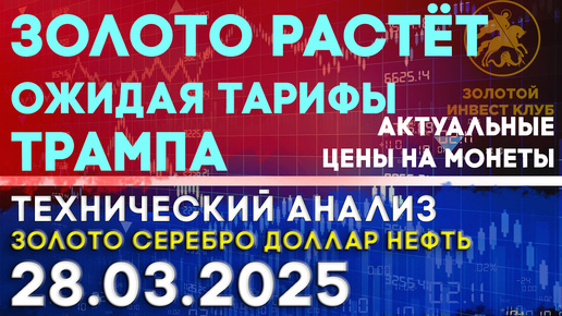 Золото продолжает рост ожидая тарифы Трампа. Анализ рынка золота, серебра, нефти, доллара 28.03.2025