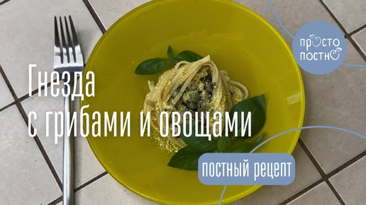 Постеые «гнезда» из макарон с грабами и овощами- сытный обед или ужин!
