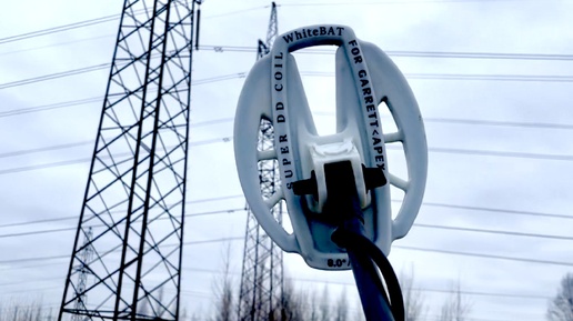 Тест под ЛЭП мультичастотной катушки для Garrett Apex-Super DD White Bat