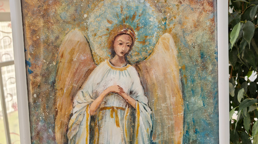 Мое творчество 🎨 Ангел. Рисую на мятой бумаге. Акрил акварельно.
