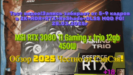 MSI RTX3080 TI Gaming x trio 12gb 450W Тесты в Играх 2К+HDR+RTX+ReSh+MOD FG! Запись жрёт 5-9 кадров!