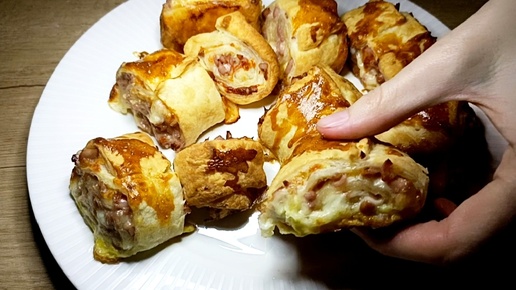 Из слоёного теста за 15 минут. Мега вкусные булочки с сыром и колбасой