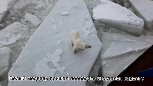Белый медведь пришел обедать к людям и остался, так как ему понравилось