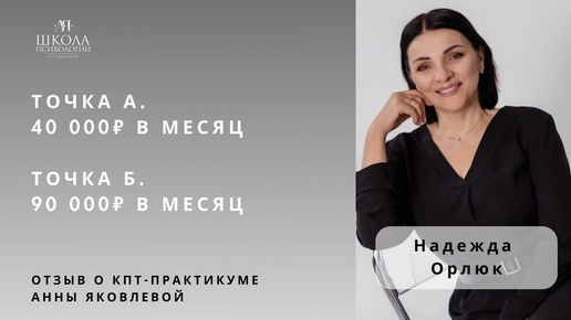 Отзыв о КПТ-практикуме Анны Яковлевой. Орлюк Надежда: от 40 000₽ к 90 000₽/месяц