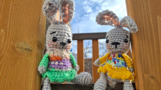 " Волшебный мир вязаных игрушек". Март. Две маленькие зайки.