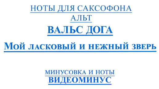 ВИДЕОМИНУС Мой Ласковый и Нежный Зверь АЛЬТ саксофон АЛЬТ + PDF + Минус