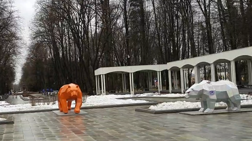 Арт "мишка, пума и барс" в парке Северного речного вокзала в Москве