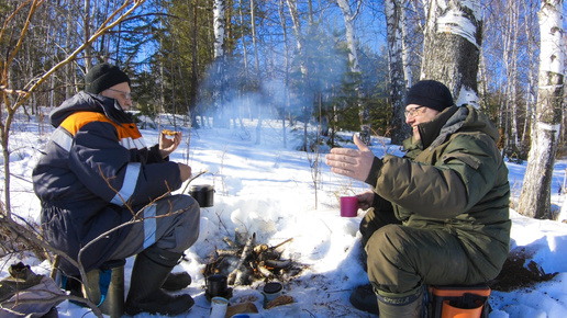 Весенняя рыбалка на реке с другом. Чай на костре и хорошая погода.