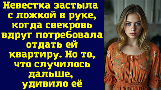Невестка застыла с ложкой в руке, когда свекровь вдруг потребовала отдать ей квартиру. Но то, что случилось дальше, удивило её