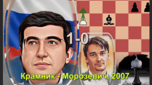 Владимир Крамник против Александра Морозевича в Мексике, 2007 на чемпионате мира по шахматам. Каталонское начало, открытая защита, 1-0