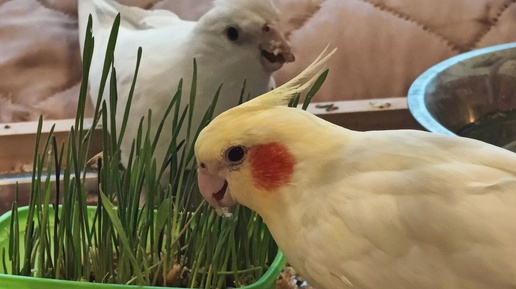 Попугаи кушают траву