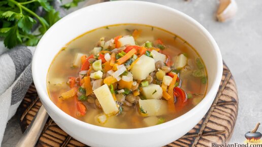 Простой по составу и приготовлению. Суп с чечевицей и овощами