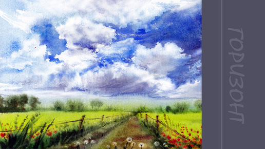 Облака.Поле .Даль акварелью | Ускоренный МК