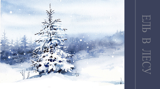 Ёлка в снегу акварелью | Ускоренный мастер-класс