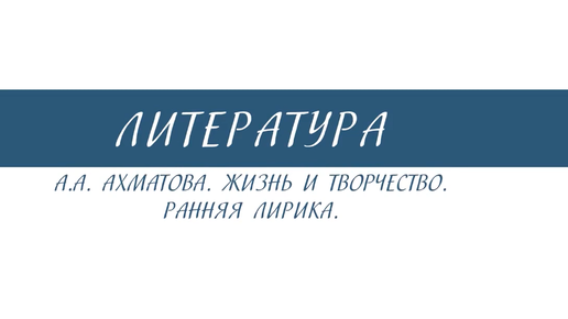 11 класс - Литература - А.А. Ахматова. Жизнь и творчество. Ранняя лирика