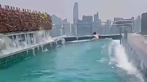 Невозмутимые отдыхающие на крыше небоскрёба в Бангкоке в разгар землетрясения.